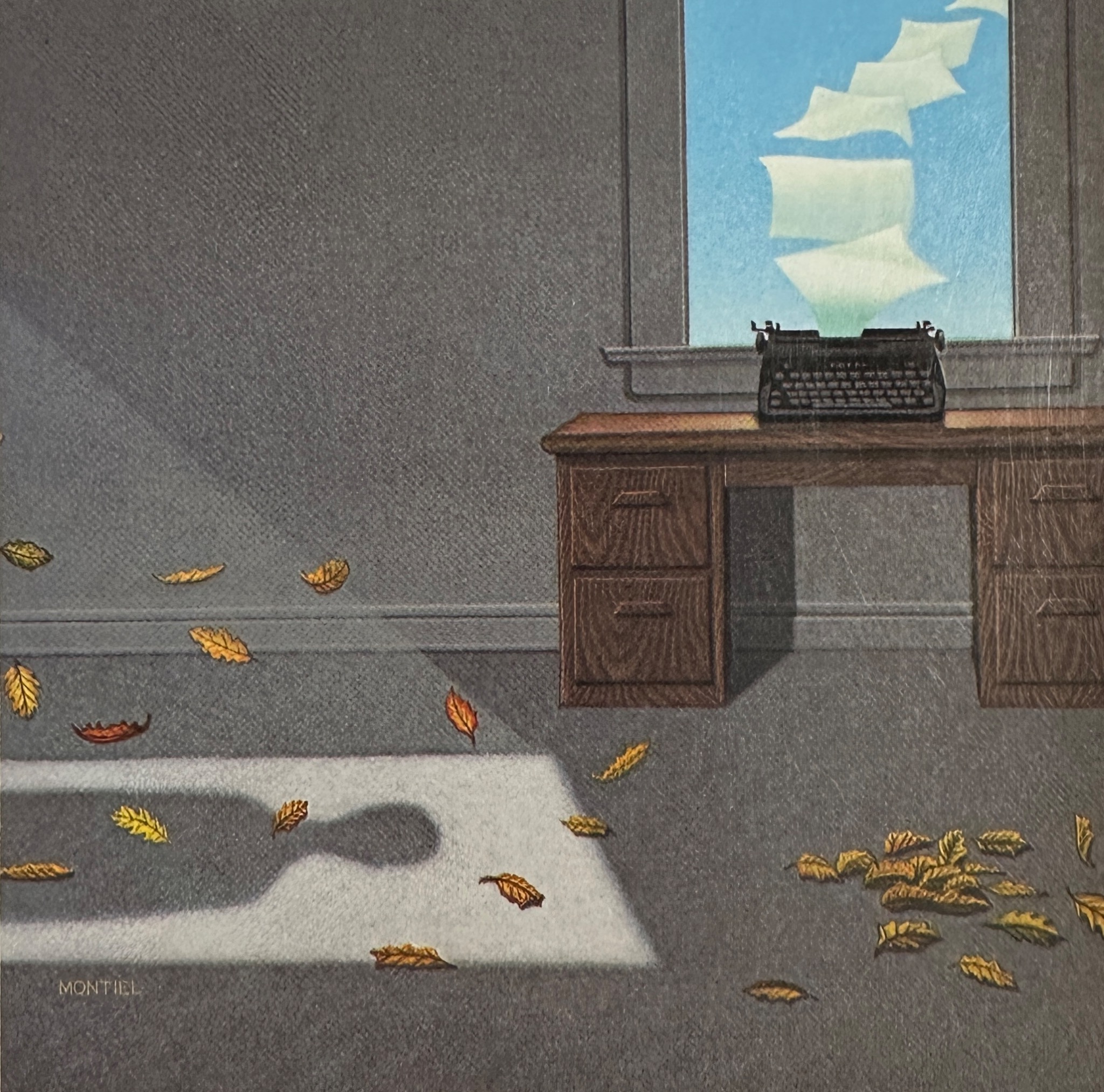 I saw in that illustration by artist David Montiel not only an apt depiction of Exley’s world but a glimpse of my possible future: A lone, shapeless shadow in the doorway; an empty room save for a desk and typewriter; the blank pages of what would become a half-baked and more-than-likely mediocre novel whisked away through an open window; yellow and orange leaves falling on the floor.